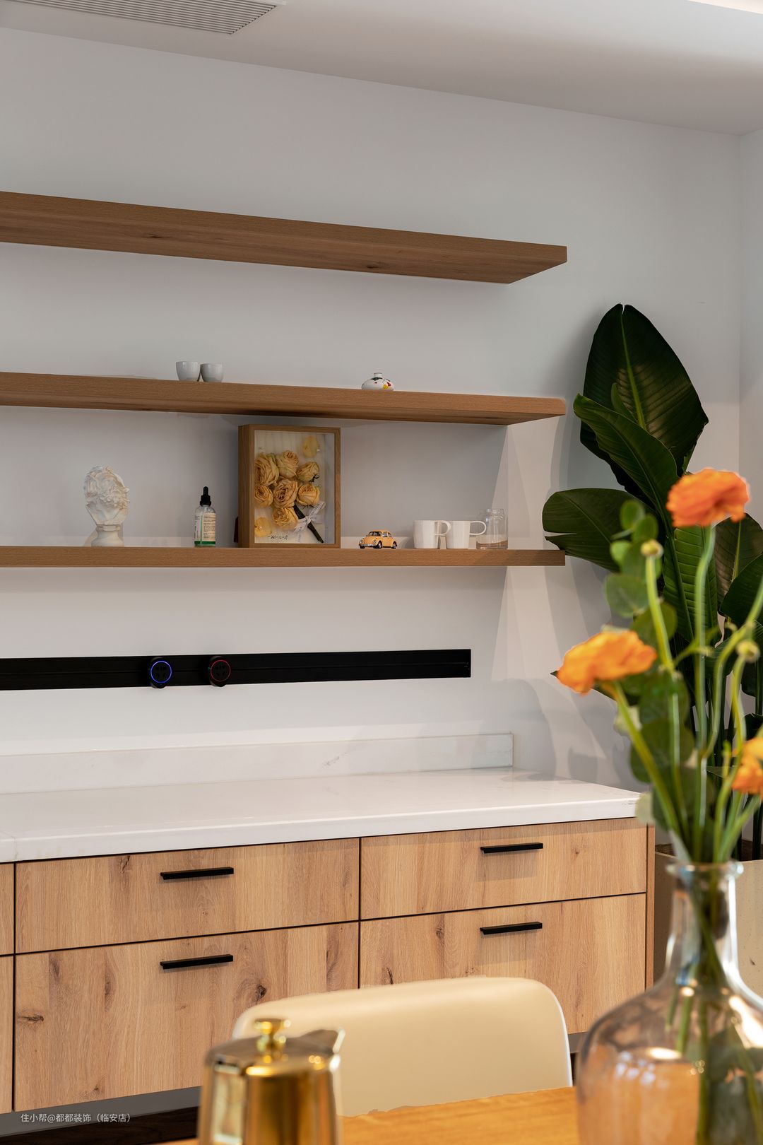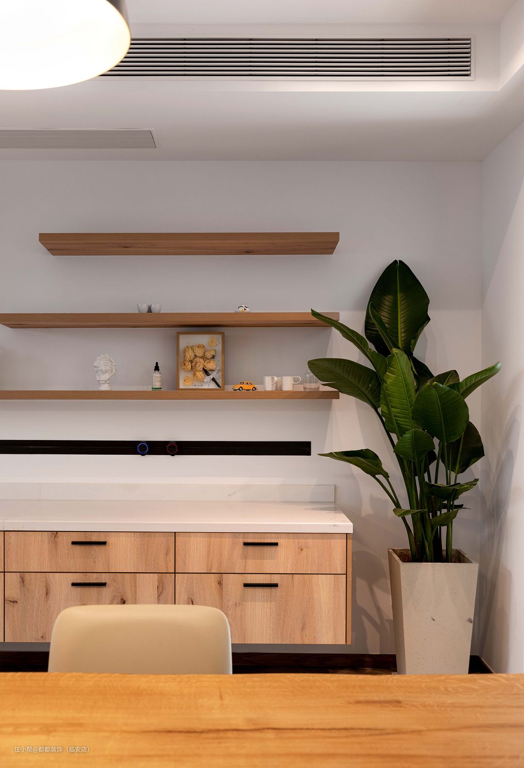 柴米油盐皆是诗,楼尚木作定制的橱柜搭配入手温润细腻的白色岩板,澄净温柔,也与空间颜色妥帖融入。如今,业主一家已经搬入了新居,闲暇的时候,她会在这里研究些甜点,录制美食视频发到自媒体平台上,对于业主来说,得到粉丝的喜欢是一件很有成就感的事情。