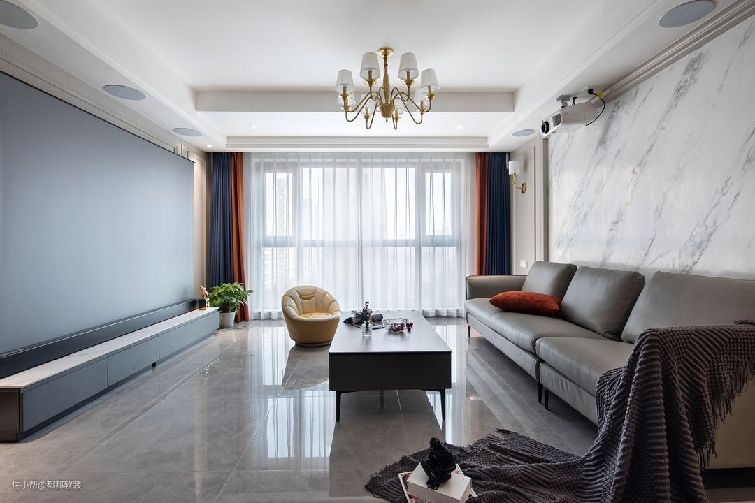 护墙板搭配乳胶漆,打造出了个性优雅的沙发背景墙,摒弃华而不实的装饰,右侧做了高颜值壁龛,摆放几本随手可以拿取的杂志书籍,好看精致的时尚饰品,能使客厅摆脱单调的同时,将室内面积发挥到极致。