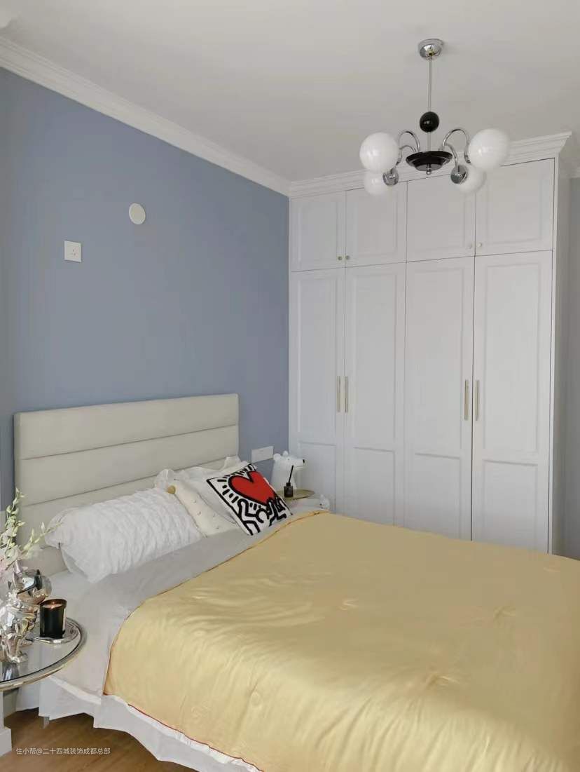 墙面是与客餐厅一样的灰,同样的材料,可以更省钱,也不容易产生浪费,房子的整体协调性更强,灰色对于软装的包容性也很高。