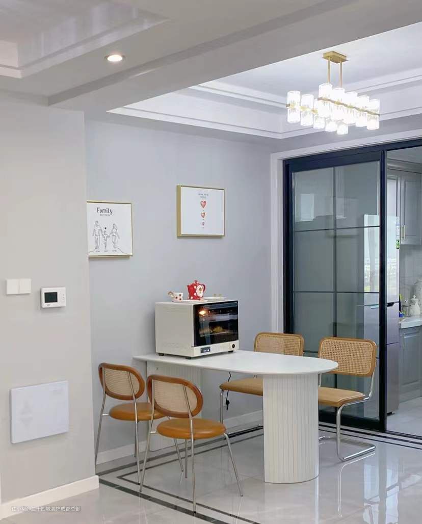 餐桌是ins款,整体都是白色,非常的百搭,随便什么风格都能往里放,桌腿上的拉槽处理,增加更多的设计感,用简单的形式变化,做差异化的表现,让餐厅可以更加时尚。