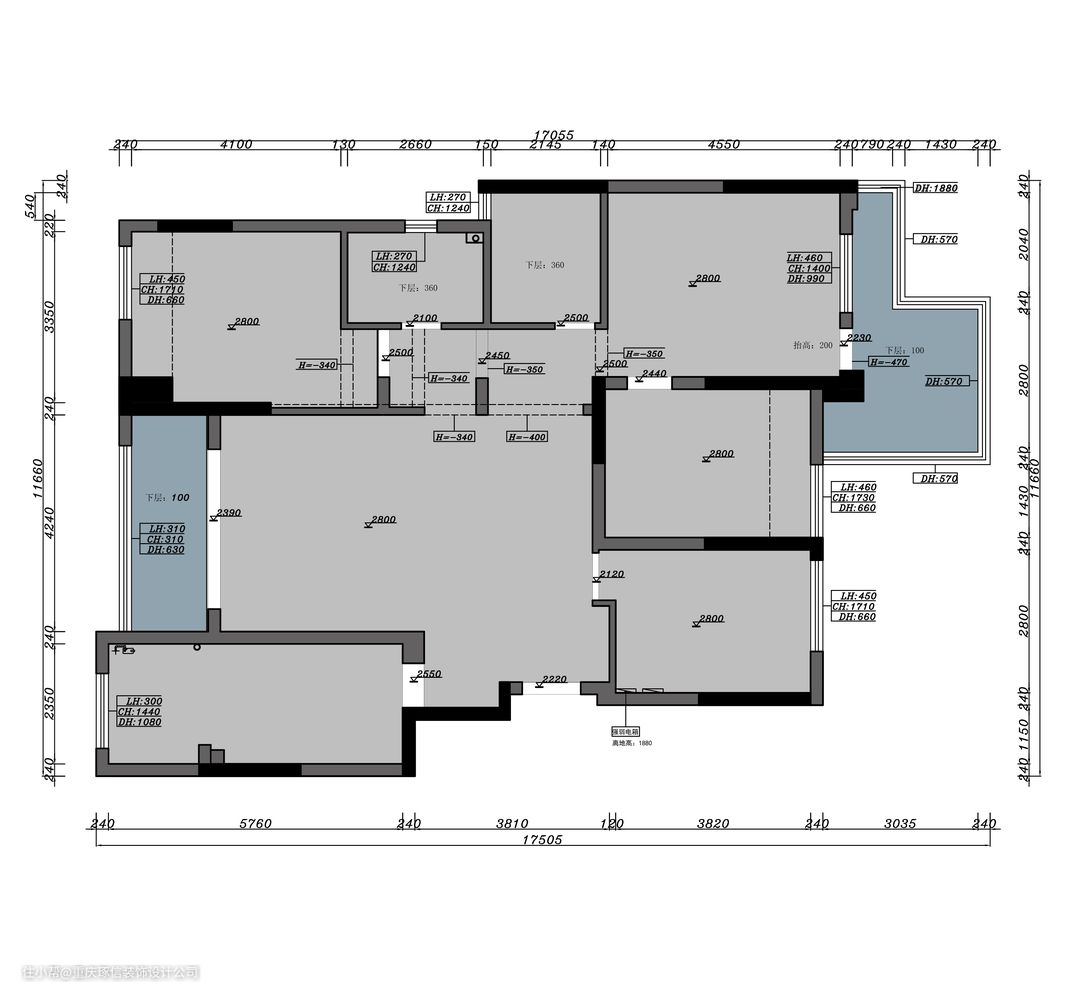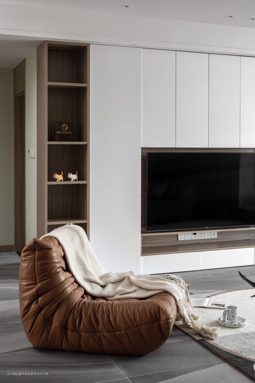 硬装设计师去量房的时候现场框架基本已定,业主没有更改大结构的需求,再现有的基础之上做装饰及局部调整,在原始定的沙发位置和电视墙的位置进行了调整方向,沙发最终选择侧对入户门,形成与入户呼应的视角。