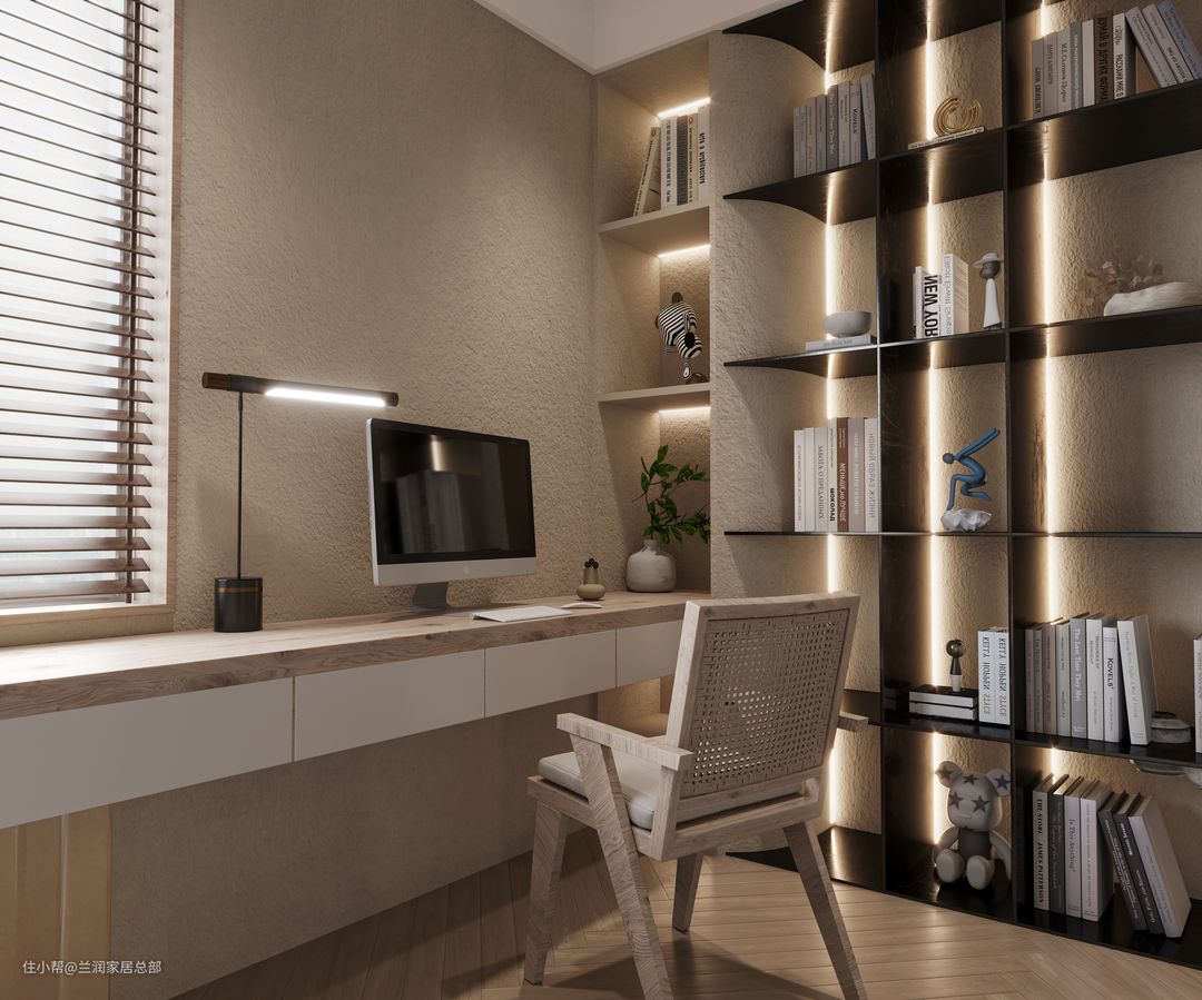 ❸学习区悬浮书桌满足小朋友日常的学习需求书桌底部留空方便了日常卫生的清扫书墙为书籍提供收纳空间学习氛围满满~.
