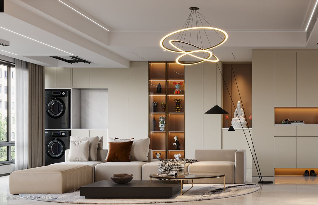 通过收纳柜和空间本身性能的展现,现代风格的家具通常也都是以利落的线条来进行一个修饰,力求简之美的表达。