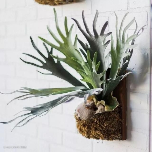 鹿角蕨,又称霍恩蕨类植物,是植物王国的鹿角。属附生植物,也被称为空气植物,不需要土壤生长,可在一些带泥炭藓的木板上生存。适合放在光线明亮的墙壁或者书架上,养殖的数量越多净化效果越大。