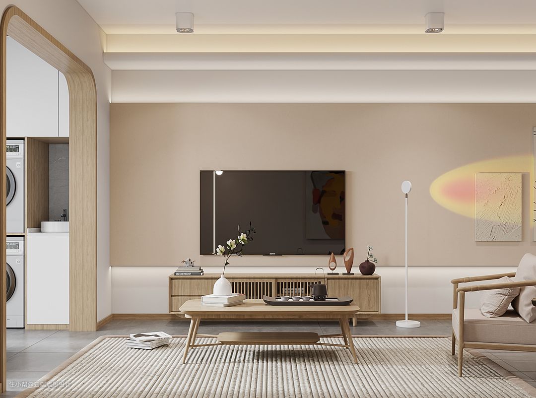 三居90平现代日式混搭 原木与纯白