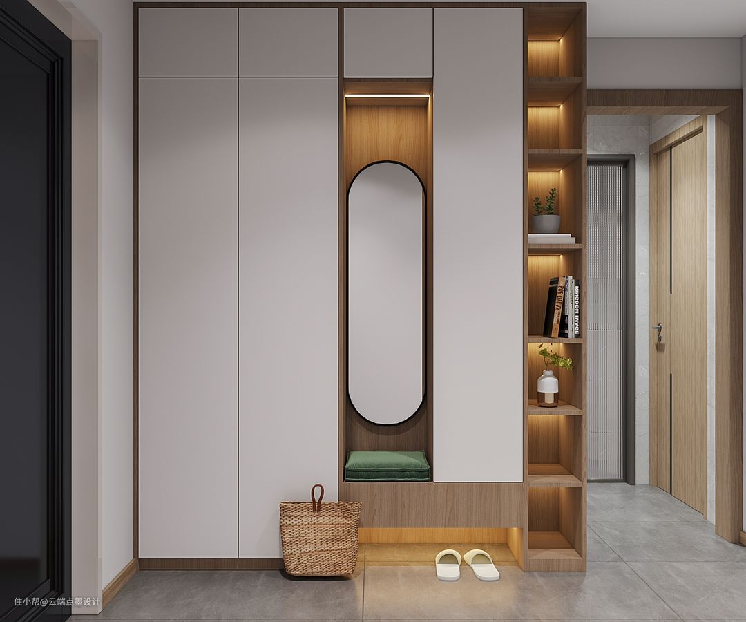❶ 入户玄关部分墙体拆除,为南次卧做隐形门设计