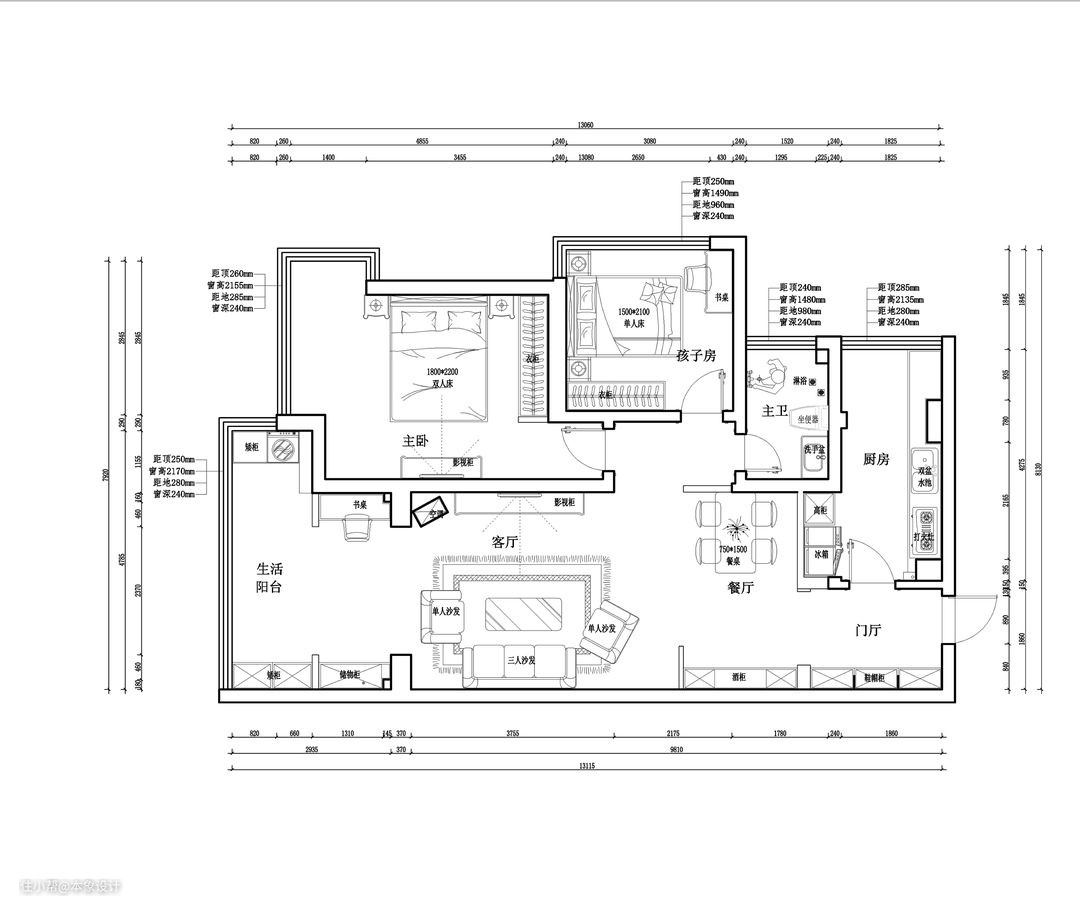 - 本户型的缺点是阳台空间超大,功能上缺点是没有独立的学习空间;