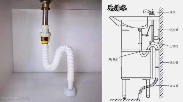 3、有安装条件的话,尽量都在下水管安装一个存水弯,可以利用水封的效果来隔绝臭气。