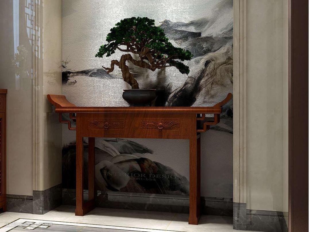 条案从古至今,常被文雅之士用来做家中的摆饰。简约大方、端庄典雅,往入户处一放,整个空间极具韵味。