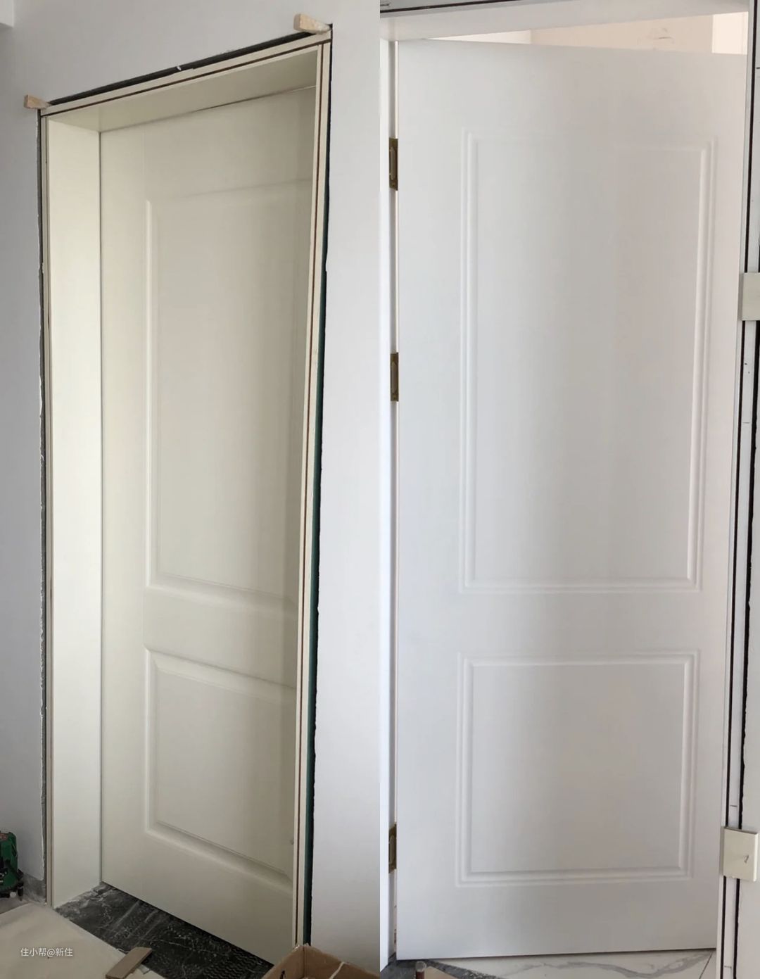 不同品牌的白,叫法都不一样,有的白发黄 ,如下图,跟白墙搭配,简直要崩溃,不知道的还以为是拆了个用了十年的旧门。