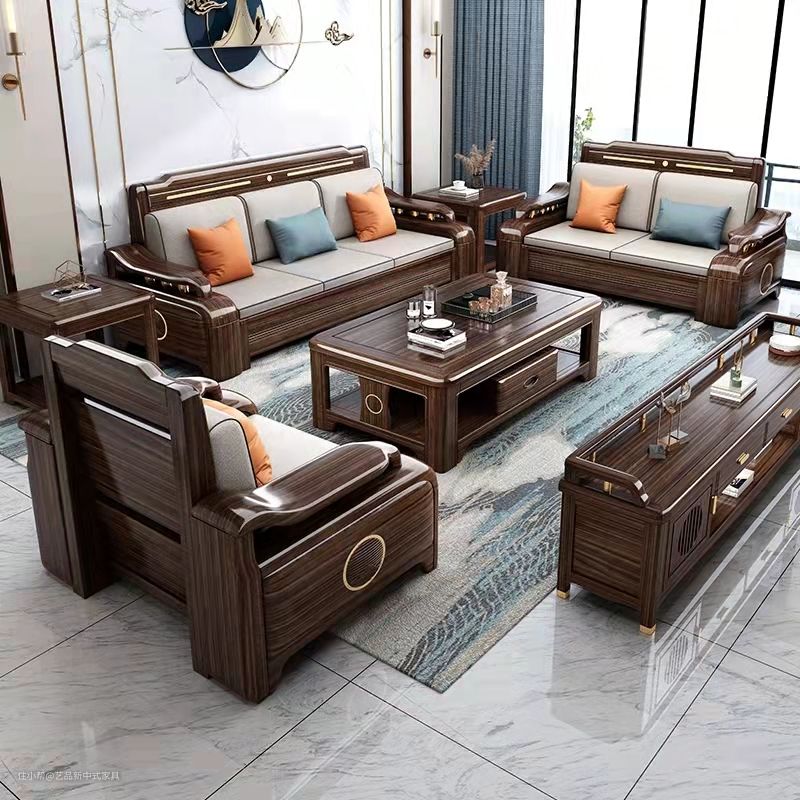 客厅家具以实木为基本框架,采用的实木原材料为乌金木,木质坚硬,艺术感极高。新中式家具用传统的工艺设计,让木材之间巧妙地结合,制造出独一无二的艺术家具,新中式家具融入传统文化精华,具有独特的美学体系,每一件家具都蕴含着中国传统的生活态度和器物精神。