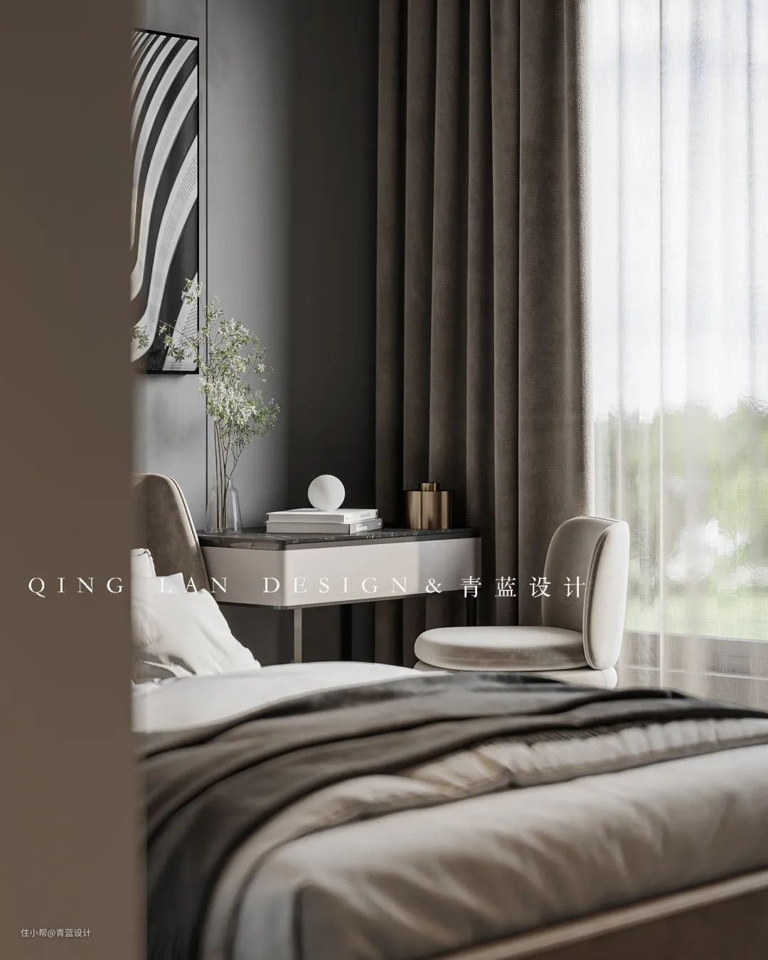 色系统一赋予卧室这个休憩空间更多的温润和舒适感,营造一种惬意的空间氛围。