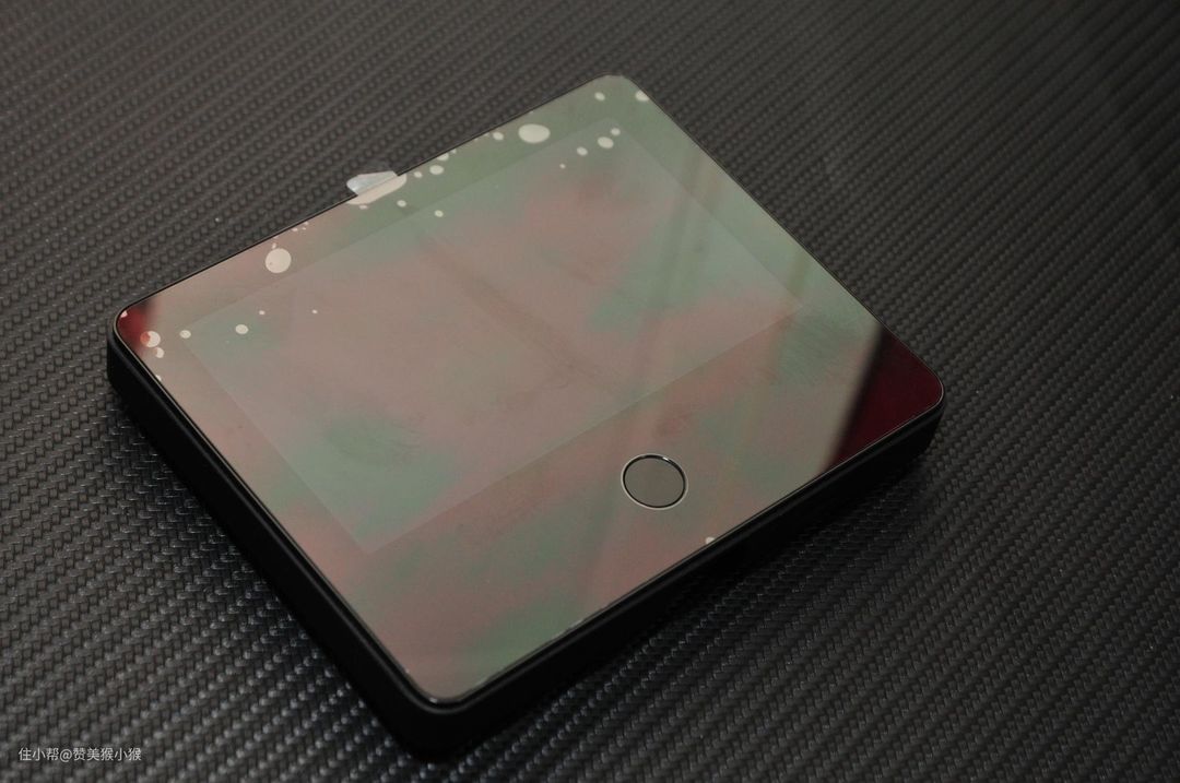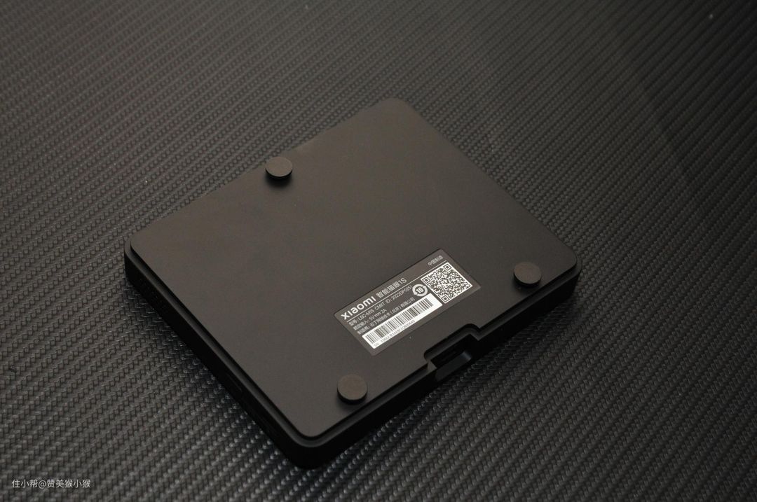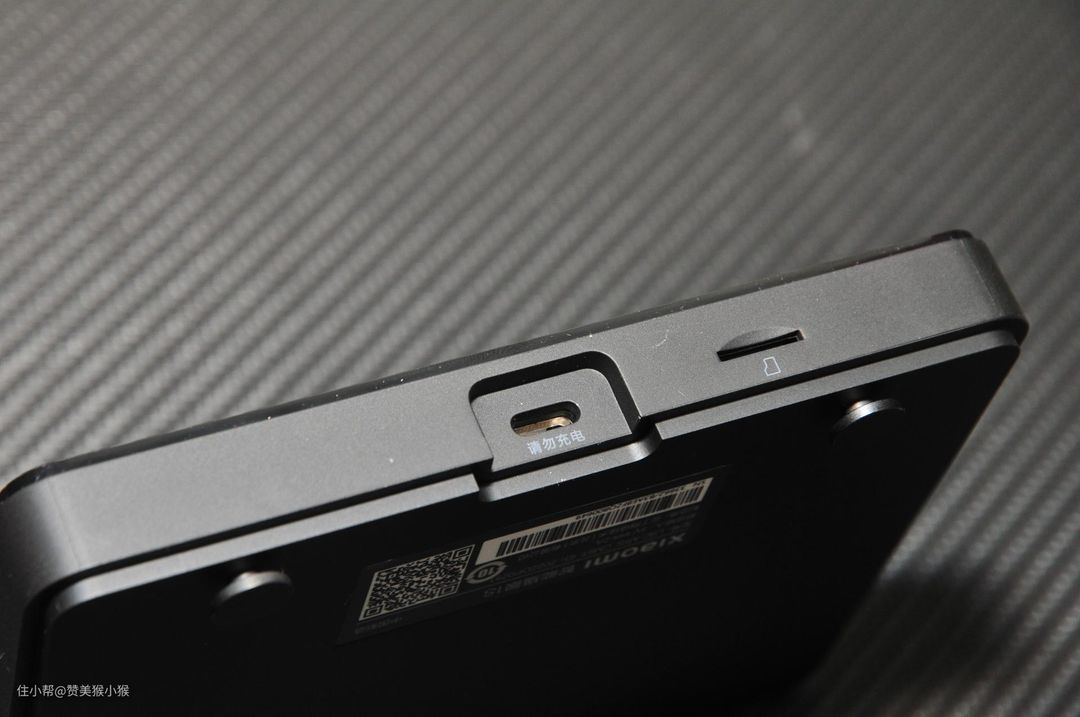 这里小米智能猫眼1S的屏幕正面这颗按键主要是用来点亮显示屏激活猫眼监控的,并不是开机按键。可以看到这里的设计非常精致,,略微带一些下凹设计,下压手感阻尼感适中。