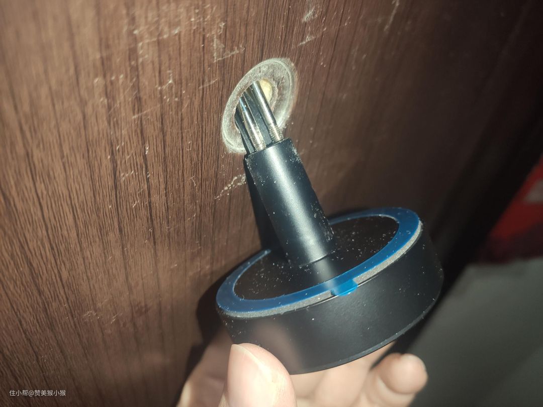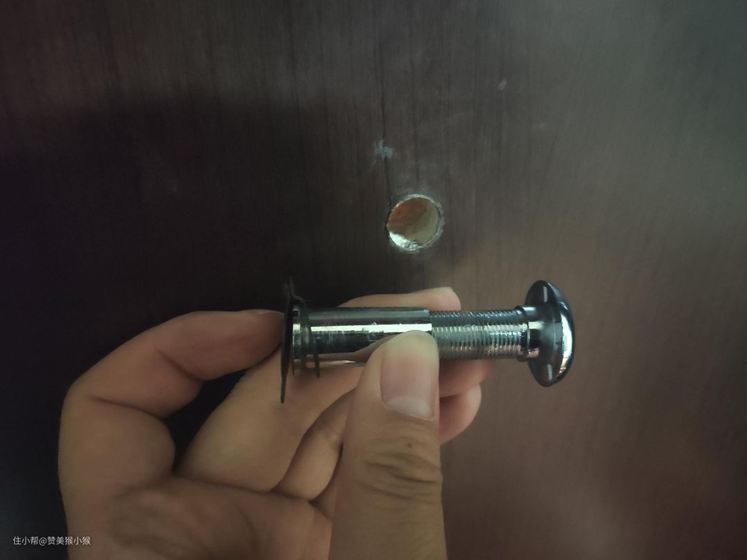 接下来,简单介绍下具体拆装过程。首先需要将防盗门上的原有猫眼拆下来。