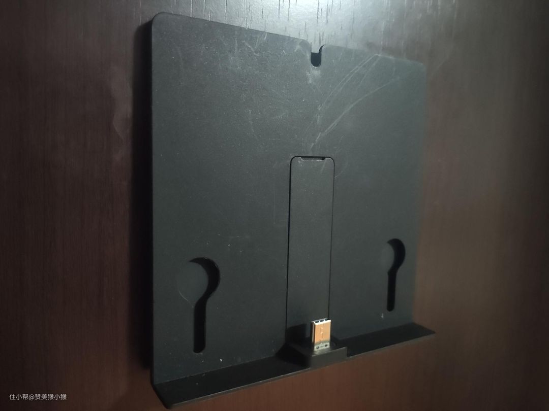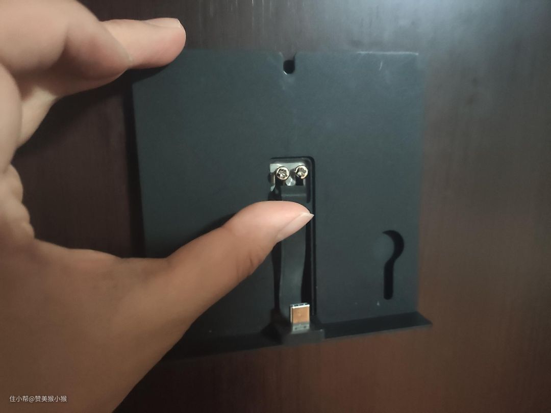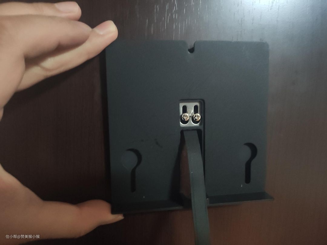 接下来则是显示屏的安装支架部分,这款智能猫眼配备的显示屏安装支架为L型结构,正面带有两个显示屏固定滑槽,中央为猫眼数据排线的收纳装饰盖板。