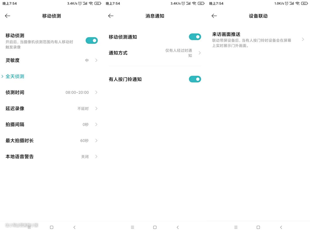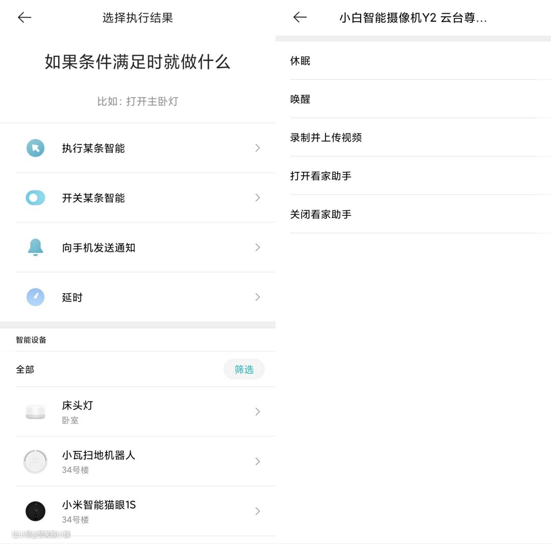 这里可以将猫眼与家中的小米小白摄像头进行联动设置,有人异常停留时自动开启摄像头的看家助手模式,防止陌生人侵入家中。