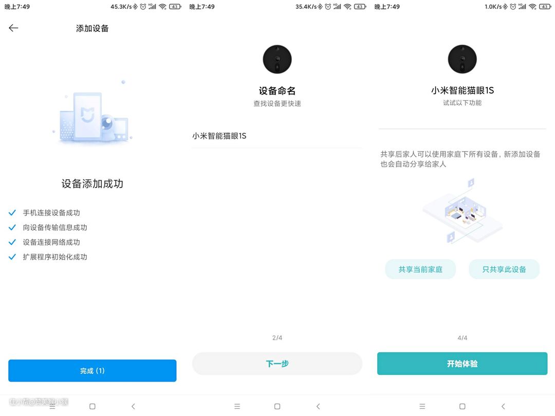 在首次添加后还可以选择是否与米家带屏设备选择联动,例如有屏幕版本小爱音箱可以与智能猫眼联动显示,将猫眼画面投送到小爱音箱大屏幕上,更方便的在其他房间查看猫眼画面。