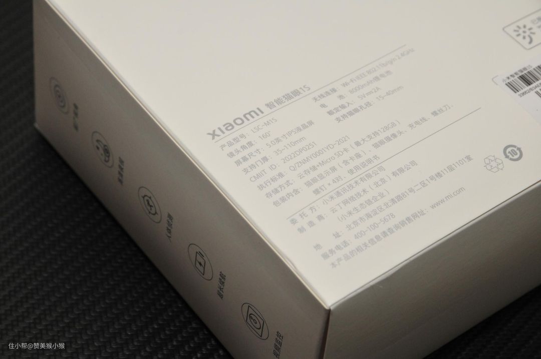 猫眼外包装采用了白色配色,正面印有小米智能猫眼1S的产品以及米家生态链标识。