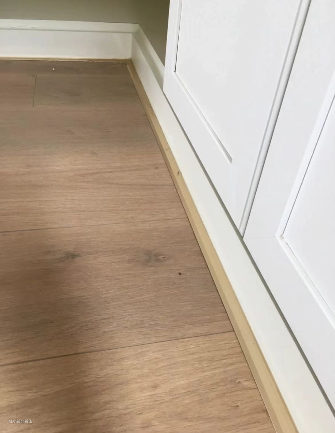 为了省一点地板钱,装修时就先装了衣柜,再铺的地板,结果衣柜和地板之间有缝隙,又重新贴了收口条,真的是巨丑,还给入住留下卫生隐患。