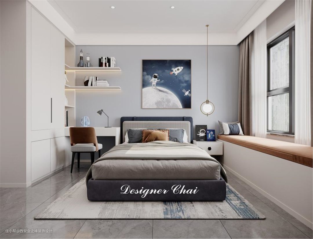 儿童房主打就是环境感打造出一个温暖静谧的质感空间,围合出舒适的起居中心,儿童房的选色也是多样化没有局限性主打亮色为主搭配一点高级亮色增加了不同的饰品使其保证孩子在生活中的成长环境氛围。