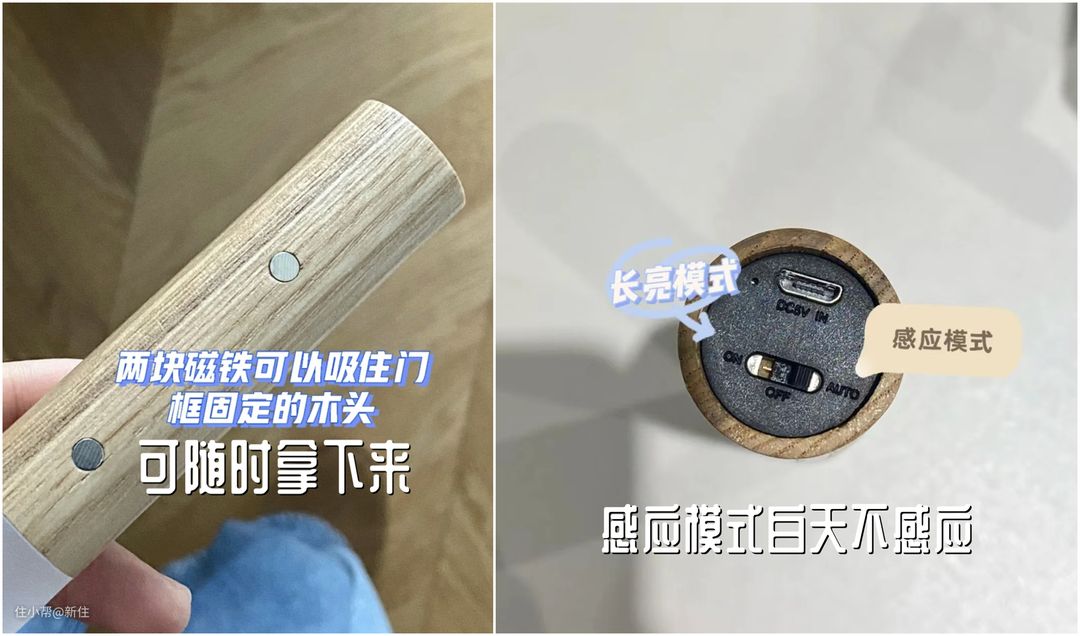 因为灯是磁吸在底座上的,可以随时拿下来,将感应模式调成长亮模式,还能化身一个小“手电筒”,半夜想悄咪咪地喝口水,也不至于影响到家人。