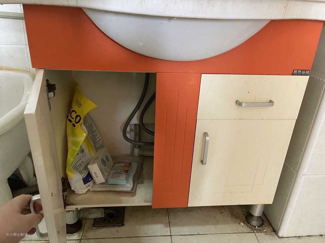 核心的问题,在于柜子据地太矮,难清扫。做成高脚的或者壁挂的浴室柜就能解决这个问题。