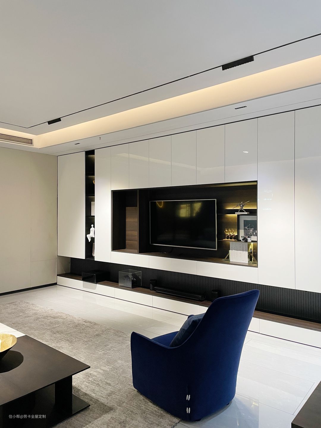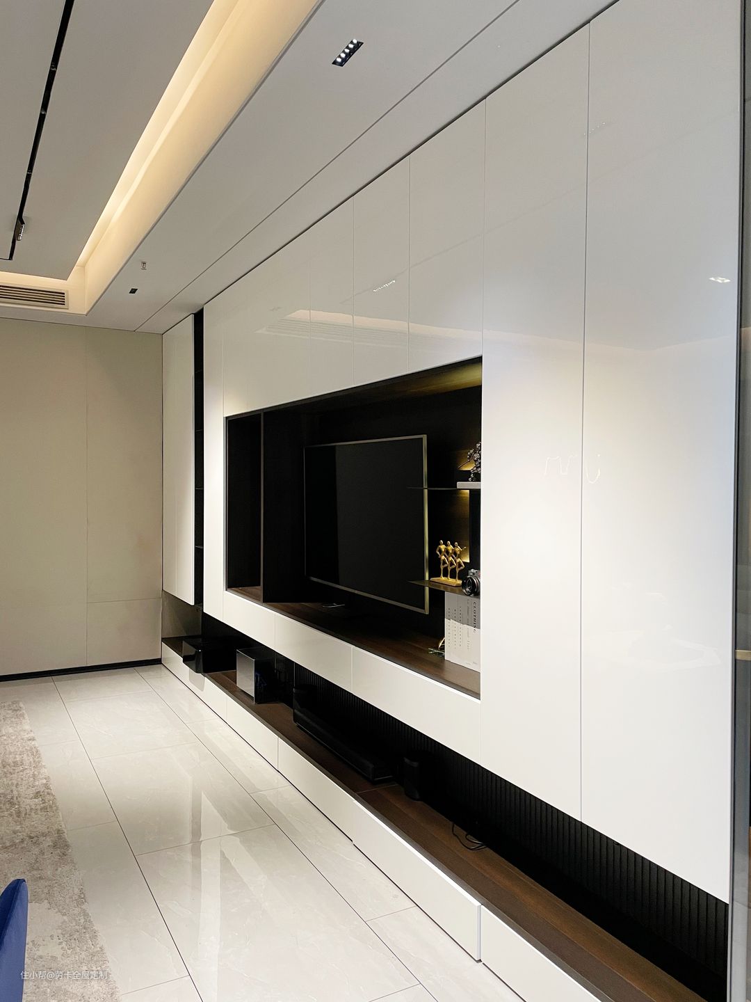 建议客厅宽度至少要有3m,柜子做得越长对客厅宽度越大,不然整墙的柜子只会带来压迫感和拥挤感,客厅活动空间也局促