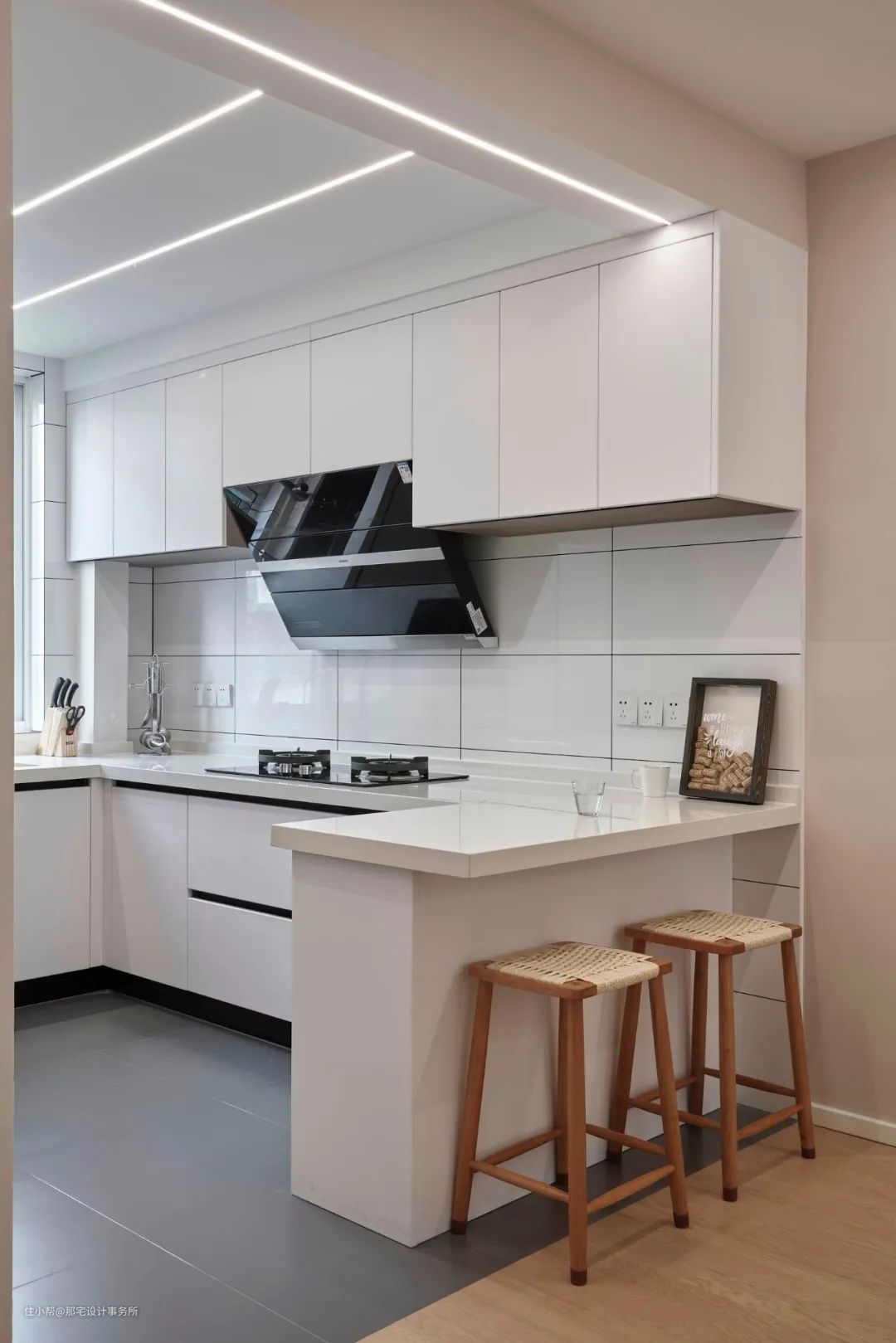 厨房:厨房很适合用线性灯带做照明,厨房照明重点是操作台,只要在吊柜下方安装灯带照亮台面,最关键的问题就解决了,再在整体空间用线性灯带作为基础照明,亮度没问题。