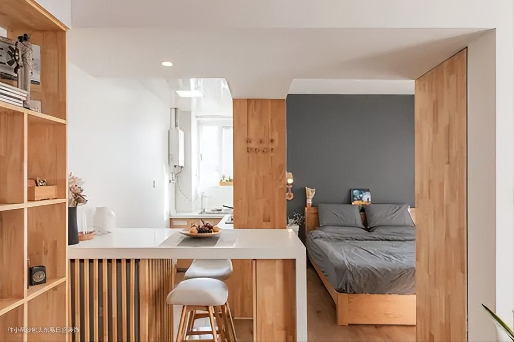利用吧柜、吧台起到划分空间、点缀室内气氛的作用。这种布置灵活方便,使室内多姿多彩,隔而不断。如果在餐厅或厨房中设置酒吧,采用隔断式效果较好,既满足了酒吧的功能,又能将餐厅或厨房分隔成两个区域,互不干扰但联系方便,互通有无。在面积较大的厨房中,将厨房与过道用吧台隔离,构成开放式结合,极其巧妙合理,不失为较好的设计办法。这一般适用于居室面积较大且有多种功能用途的房间。