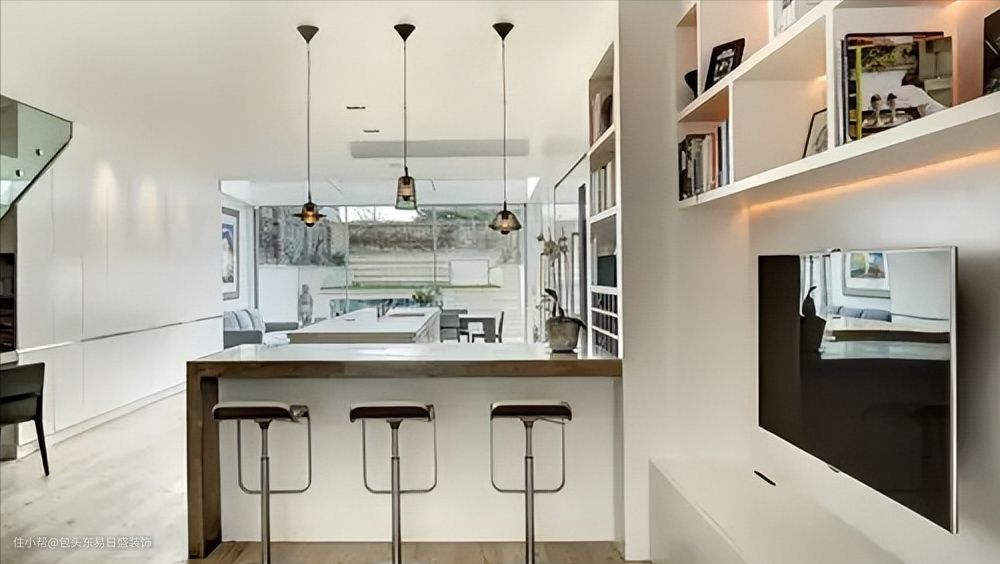 吧台对家庭来说并不是一个非要不可的空间,所以吧台的设置应该是以充分利用空间为前提,它通常不仅仅具有一个吧台的功能,还要考虑和其他功能相结合,这样也是为了更好的使用空间。