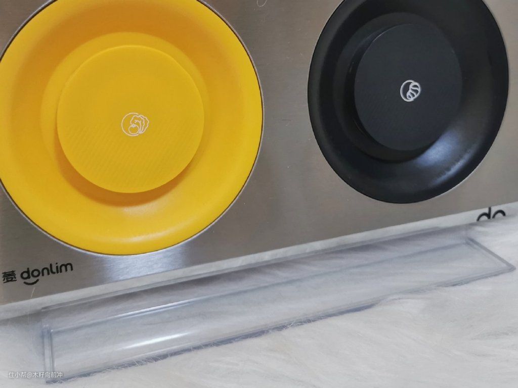 充电底座上则有明显的颜色区分,黄色为果蔬仓,黑色为肉类仓,分辨度高,让人一目了然,不会混淆。