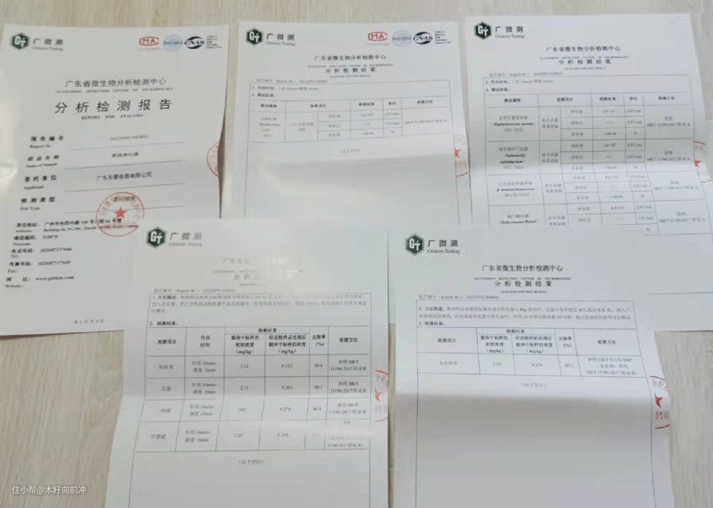 因此,在楼主评测的三款热门果蔬净化器中,东菱DL-1271和蓝宝BP-XD06这两款果蔬净化器是楼主比较推荐的。楼主选择了其中的东菱DL-1271作为自用款,因为它的使用感更好,相比蓝宝BP-XD06清洁能力也更强。而且三款机器拿到手后,包装盒中只有东菱DL-1271中还附有官方送检报告,报告显示,东菱这款果蔬清洁机对农残(敌敌畏、乐果)去除率>90%,对细菌(幽门螺杆菌、大肠杆菌、金黄色葡萄球菌等)除菌率>99.99%。官方的背书,无疑也增加了楼主的好感,从而让其得到楼主青睐。小伙伴们在选择时,可以多方考量,按需购买。