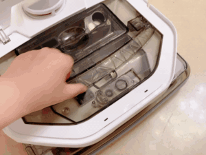 ▲不过这时候一体式的清洁系统就凸显出来好处了,因为可以整体拎出来清理,完全支持水冲,加入一点清洁剂,可以清理得很干净。