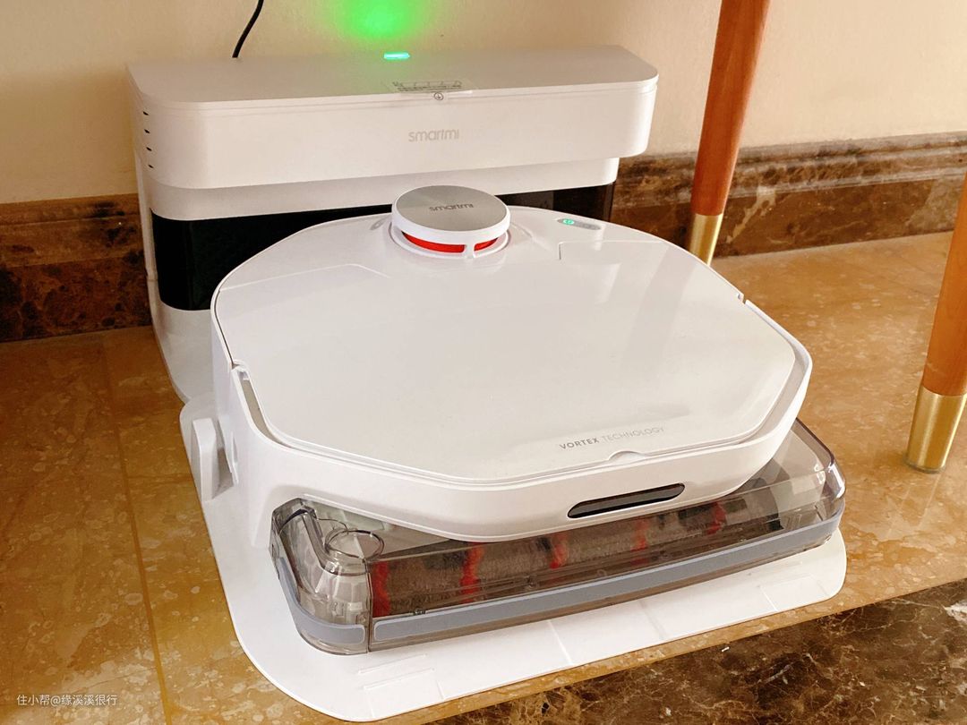 之前家里也买了洗地机,的确擦地方面很擅长,擦洗得很干净,但是它还是需要人来操作的,就算时间短,也总要占用一个人,所以我也一直还在看那些全自动的洗地机,想着总有一天就连操作机器的这一个人也不要用。不过全自动洗地机普遍都拥有一个超级占地方的基站,甚至在某宝上还有专门给这种基站配的小柜子,也太夸张了吧,这也是我迟迟不肯入手的原因。不过现在好了,智米出了一款洗地机器人,就和扫地机器人一样大小,关键基站也很小,不占用过多空间。而且全自动清洗,且是活水清洗,这几点都戳中了我心里的剁手点,所以果断入手请回家!