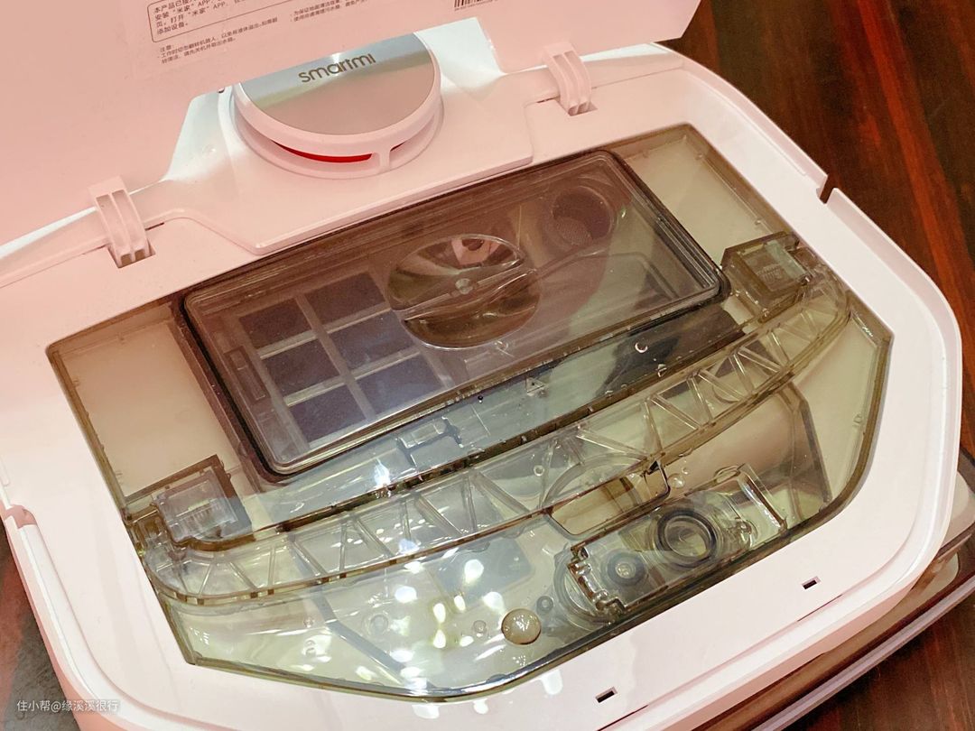 ▲智米洗地机器人同时支持干扫和洗地,所以尘盒是两用的,既可以干擦的时候收集灰尘,又可以湿擦的时候收纳脏水。