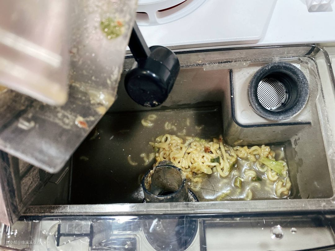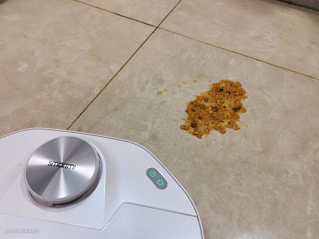 ▲那么接下来我们看看洗地机的重头戏,清理干湿混合垃圾,比如我们平时失手打翻在地的泡面、粥饭,或者不小心磕碎的鸡蛋,这些垃圾日常清理起来很麻烦,总要先固液分离,再清理,很多人买洗地机的一个主要目的也就是为了清理这些物品。
