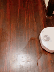 ▲从木地板来看智米洗地机的水量稍有点大,可能是我用的最大挡位,擦完后水渍拖尾比较明显,这样就很容易留下痕迹,最好增加一个控制水量的按钮,或者是针对木地板清洁。