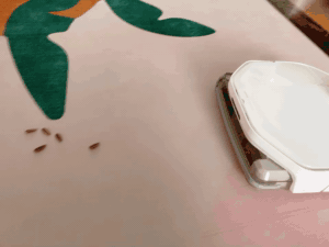 ▲可以看得出,清理完酱料污渍的智米在下一块地砖上并没有留下印子,说明滚刷确实有被清洗干净。