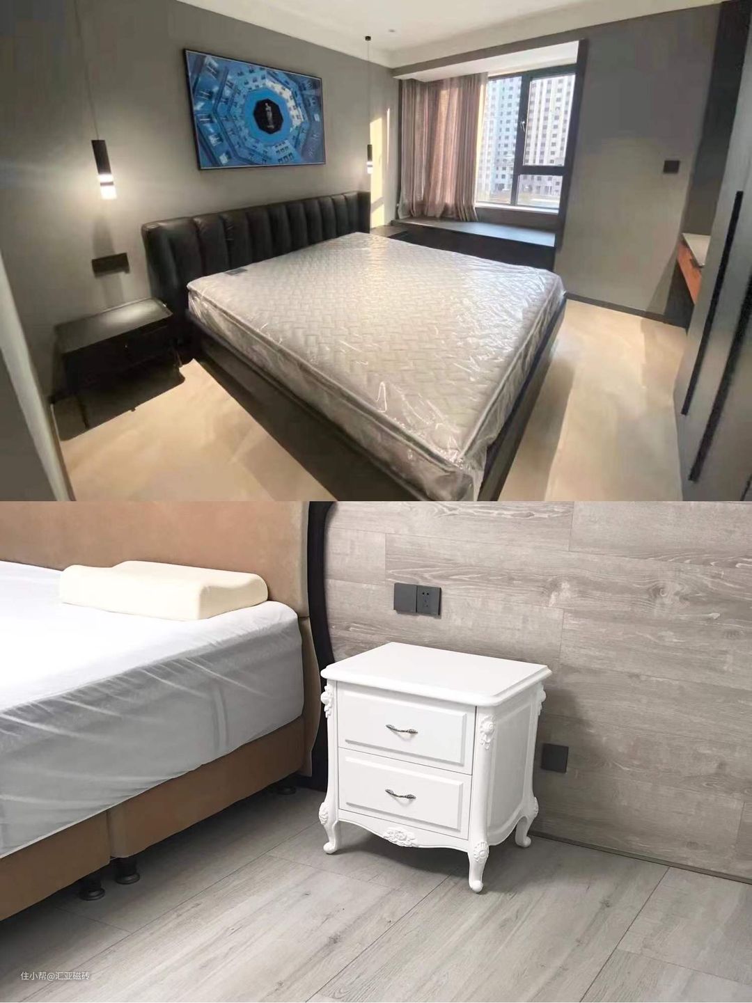 房间整体设计以清冷风为主,家具以流畅的线条绘出质感的优越性,飘窗设计增加采光的量度,让清冷色调的房间多了几分温暖。床头柜为了搭配房间的整体风格,选用了磨砂黑材质感觉的,在明亮度较低的灯光下,大大提升了空间的时尚优雅。