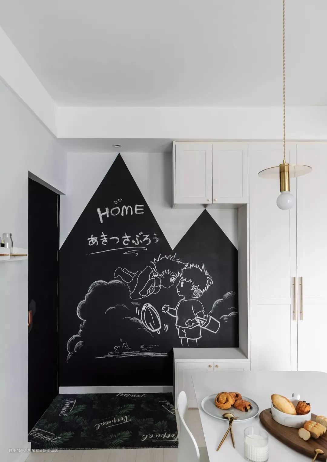 黑板墙还可以做装饰墙,在不同的节日或日子,可以画上相应格调的画面,增加节日的气氛。温馨提示:怕有灰尘的朋友可以用无尘粉笔、液体粉笔画,用湿布擦哦!