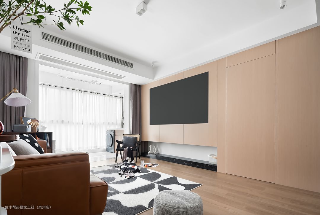 ② 当下现代设计中已经有一定比例,采用更加便利和能提升更高颜级感的投影幕布来作为代替电视的存在喔。