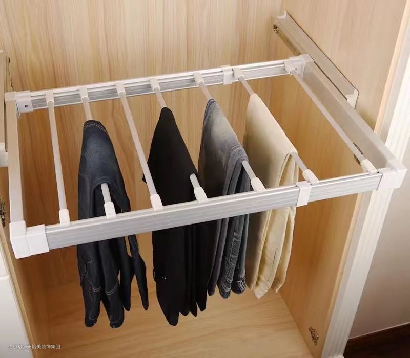 ★建议:将这里改成滑轨裤架,一条轨道可以挂好几条裤子,满足长短、品类的不同,并且外观整齐,不显乱。并且安装简单,价格实惠,只要良好尺寸,根据说明上即可。