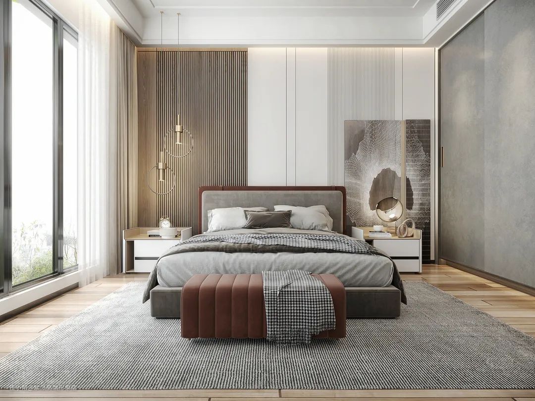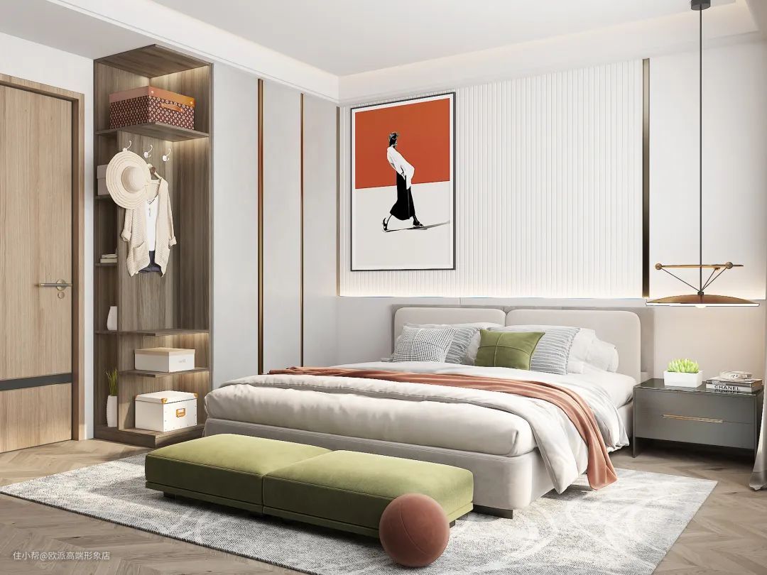 白天老人带小孩待在卧室,也不会太经常躺在床上,所以可以放置床尾凳,除了方便小孩玩耍休息外,还可以放一些换洗衣裤等。