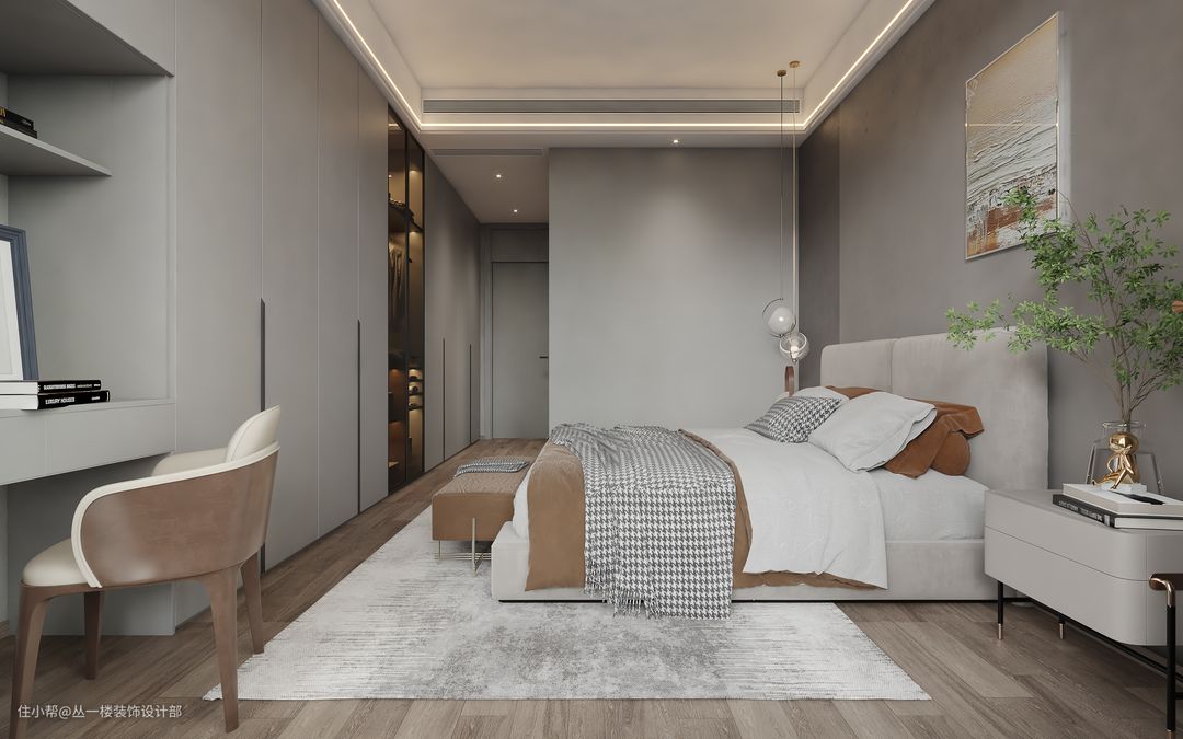卧室的装修不单单是买一张舒适的床,更应该注意衣柜,灯光,隔音.....多方面考虑才能让我们睡得更舒服,释放掉一天的疲惫。