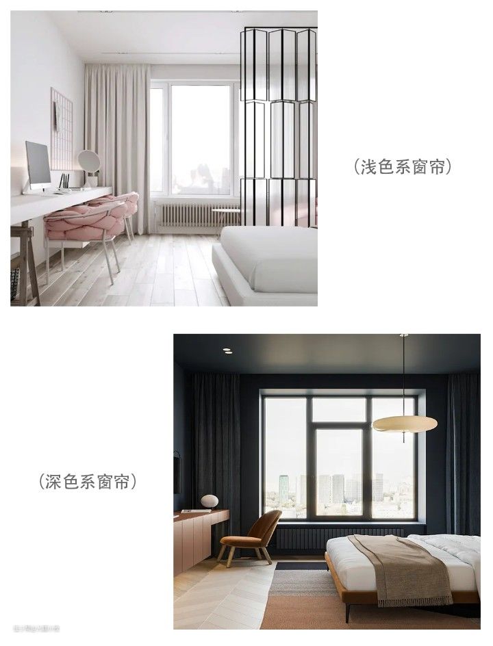 ▼需要隐私的卧室,则选择遮光更好的窗帘。