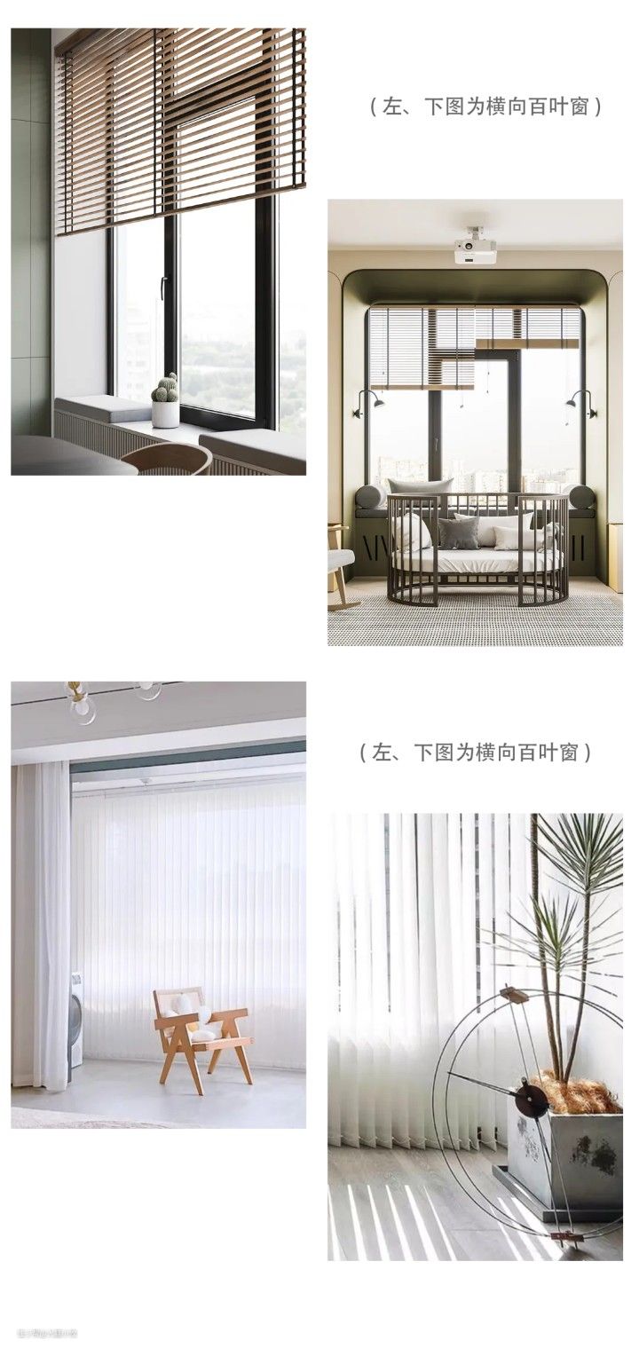 ▼卫生间、厨房、阳台可以选择横向或竖向百叶装饰帘