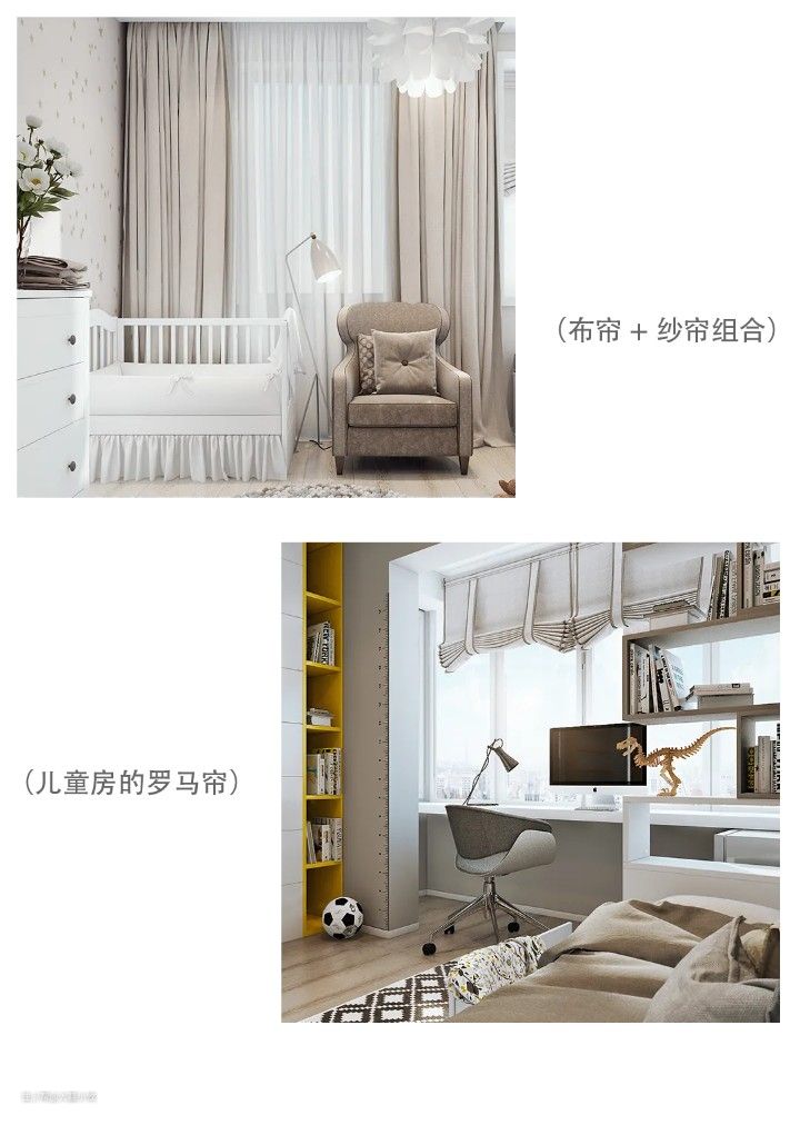 特别对睡眠环境要求高的宝子,可选遮光率90%以上的遮光窗帘,甚至可做两层遮光帘,保障光线透不进来同时还有保温效果。▼