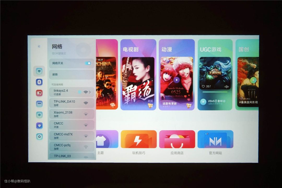 知麻M1的系统是基于安卓6.0深度开发的OS大屏智能系统,开机没有广告,进入系统速度也比较快,整个界面相比传统智能电视、投影的系统更加简单直接。下面这个就是知麻自研OS智能系统的主界面,是不是非常的直接?