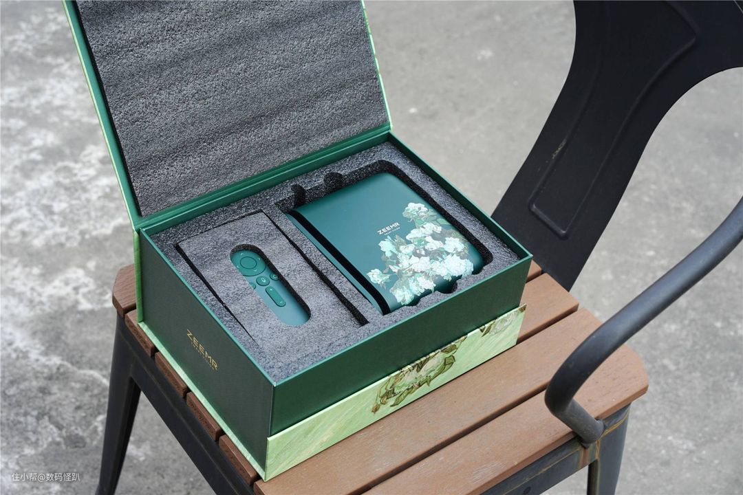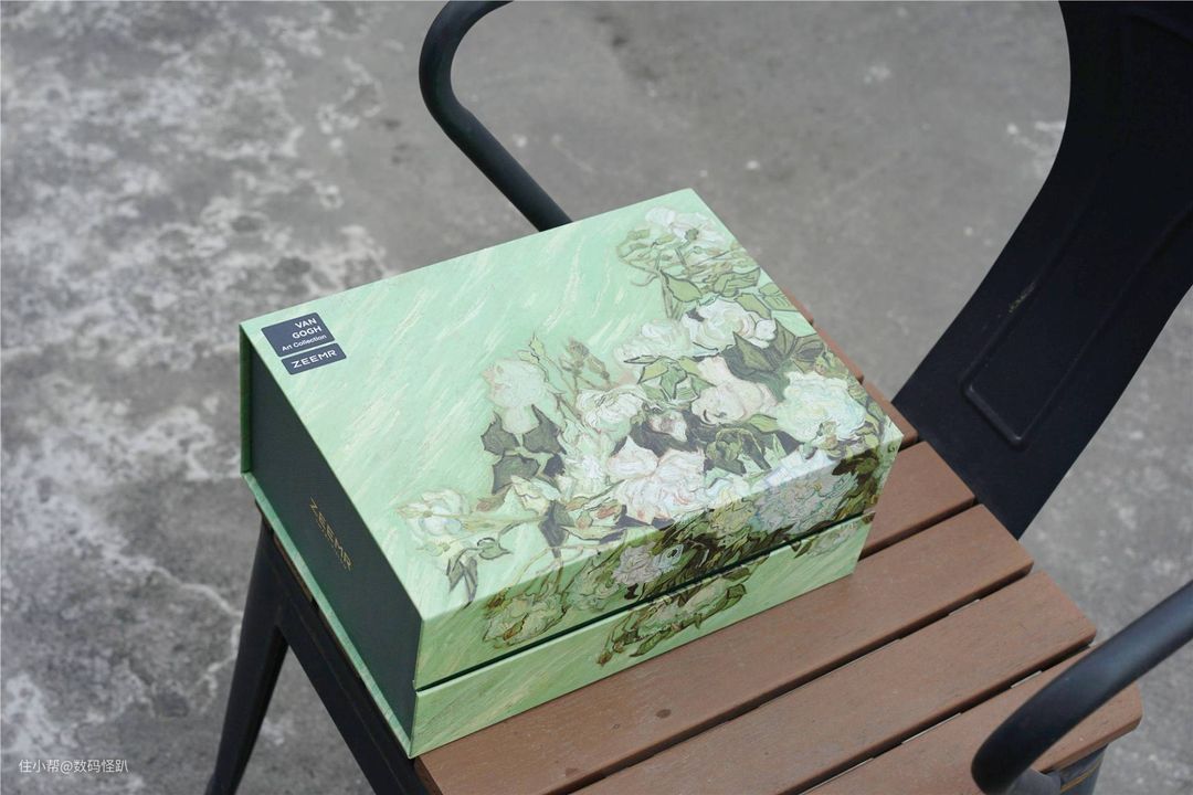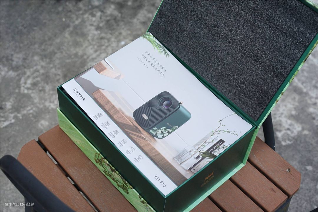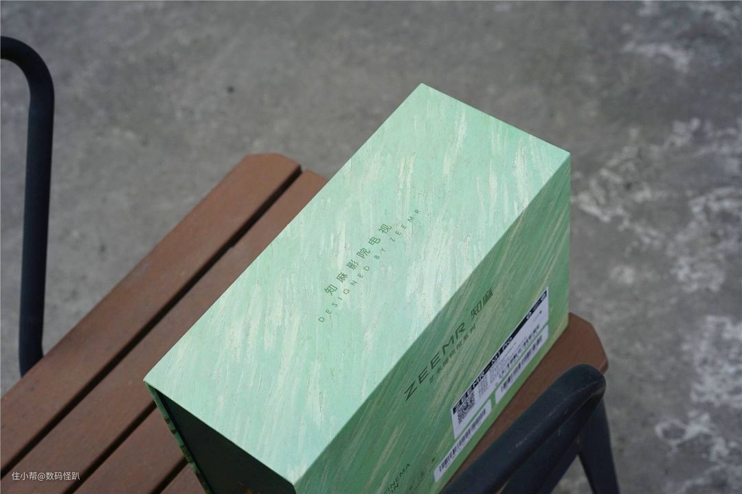 这次体验的是知麻艺术博物馆系列,应该是为了风格上面的统一吧,知麻M1 PRO的外包装也同样充满了“艺术”气息,顶部除了大面积的装饰画外,还可以看到知麻的品牌LOGO-ZEEMR,可能有些小伙伴对这个品牌还比较陌生,作为一个致力于打造新生代潮流科技的品牌,ZEEMR已经推出了好几款入门级投影。