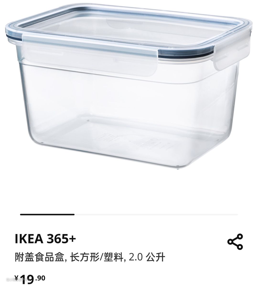 IKEA 365+ 附盖食品盒, 长方形, 塑料, 2.0 公升(792.690.81)